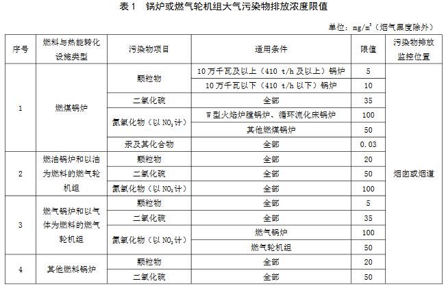 本標(biāo)準(zhǔn)適用于使用單臺出力65t/h以上除層燃爐、拋煤機爐外的燃煤發(fā)電或蒸汽鍋爐;單臺出力65t/h以上的燃油、燃?xì)獍l(fā)電或蒸汽鍋爐;單臺出力65t/h以上采用其他燃料的發(fā)電或蒸汽鍋爐;各種容量的煤粉發(fā)電鍋爐;各種容量的燃?xì)廨啓C組。整體煤氣化聯(lián)合循環(huán)發(fā)電的燃?xì)廨啓C組執(zhí)行本標(biāo)準(zhǔn)中以氣體為燃料的燃?xì)廨啓C組排放限值。