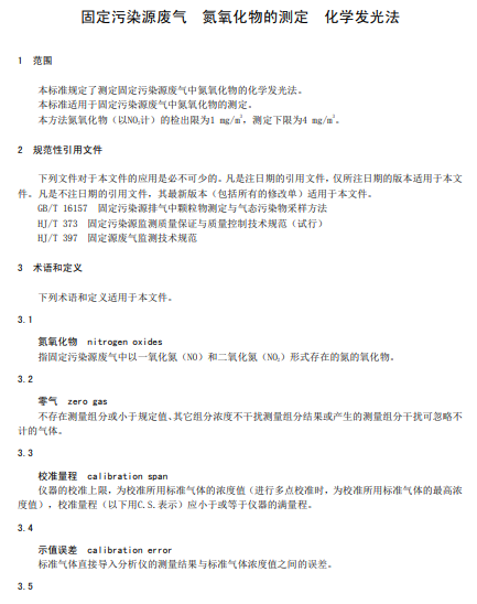 山東:固定污染源廢氣中氮氧化物的測定采用化學(xué)發(fā)光法