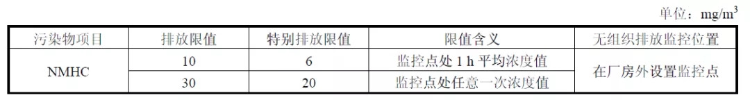 表1.廠區(qū)內(nèi)VOCs無組織排放限值