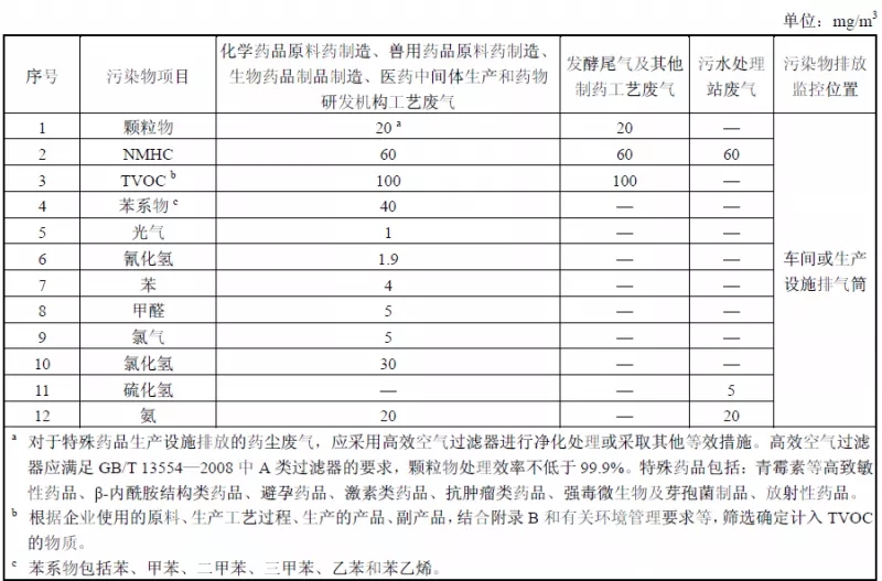 表2.制藥工業(yè)大氣污染物特別排放限值