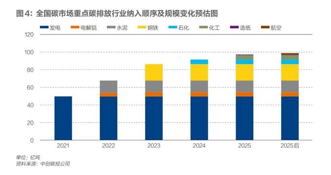 在碳市場(chǎng)涵蓋的范圍方面,未來以怎樣的節(jié)奏納入更多行業(yè),尚未明確。首個(gè)控排行業(yè)發(fā)電行業(yè)的碳排放總量約為40億噸,若電解鋁、水泥、鋼鐵、化工、造紙、石化、航空等七大高耗能行業(yè)全部納入全國碳市場(chǎng),碳排放總量預(yù)計(jì)在80億/年噸至100億噸/年之間。