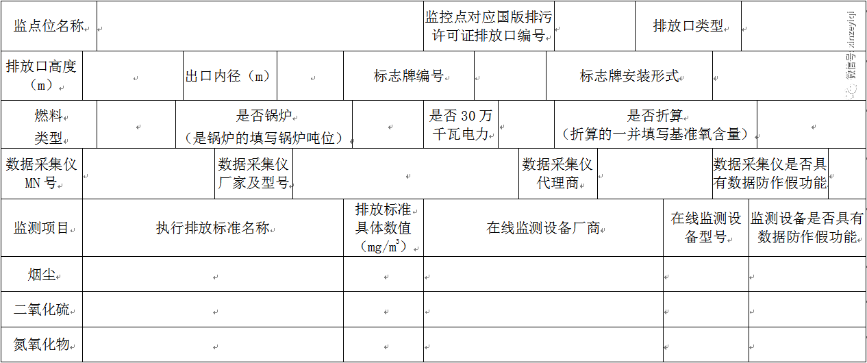 1、每個監控點位填寫一張表,表中未涉及監測因子企業可自行添加行。