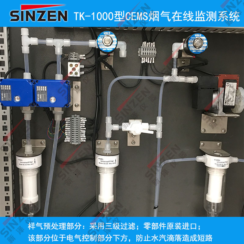 備注:被測氣體進入分析儀表前,需過濾去除粉塵和水蒸氣,依次為:氣態(tài)污染物采樣探頭內(nèi)的陶瓷或不銹鋼過濾器,預(yù)處理機柜內(nèi)1~2處過濾器。正常情況下,分析儀采樣流量一般在1~2L/分鐘。