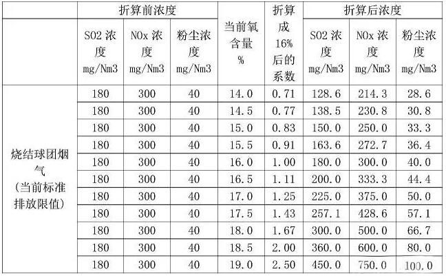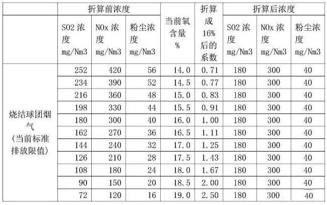 4)對(duì)于帶式焙燒機(jī)而言,濃度按氧含量16%折算并不科學(xué),因?yàn)閹奖簾龣C(jī)的排氣量包括了冷卻廢氣,而燒結(jié)機(jī)的廢氣并沒有包括環(huán)冷廢氣。帶式焙燒機(jī)應(yīng)該按18.5%折算為科學(xué)。