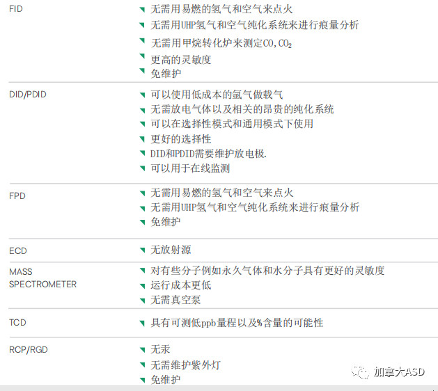 增強(qiáng)等離子體放電技術(shù)可以代替許多形式的檢測(cè)器,詳見下表
